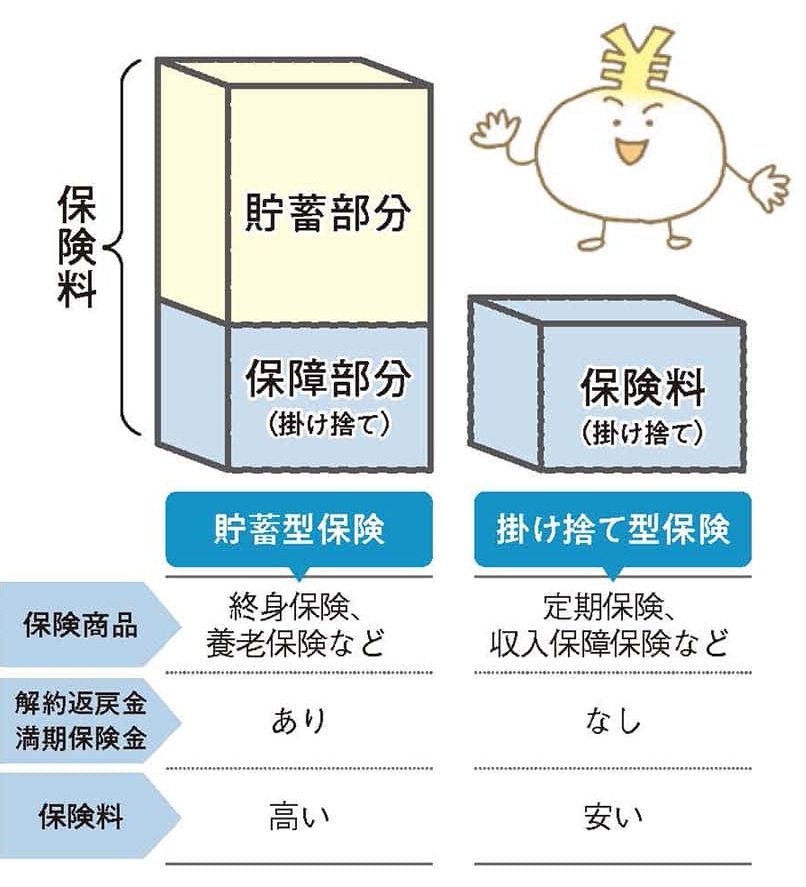 保険商品には、保険料が「掛け捨てになる」タイプと、保険料の一部が「貯蓄される」タイプがあります。保障内容に大きな差はないので、どちらを選ぶかはよく考えましょう。