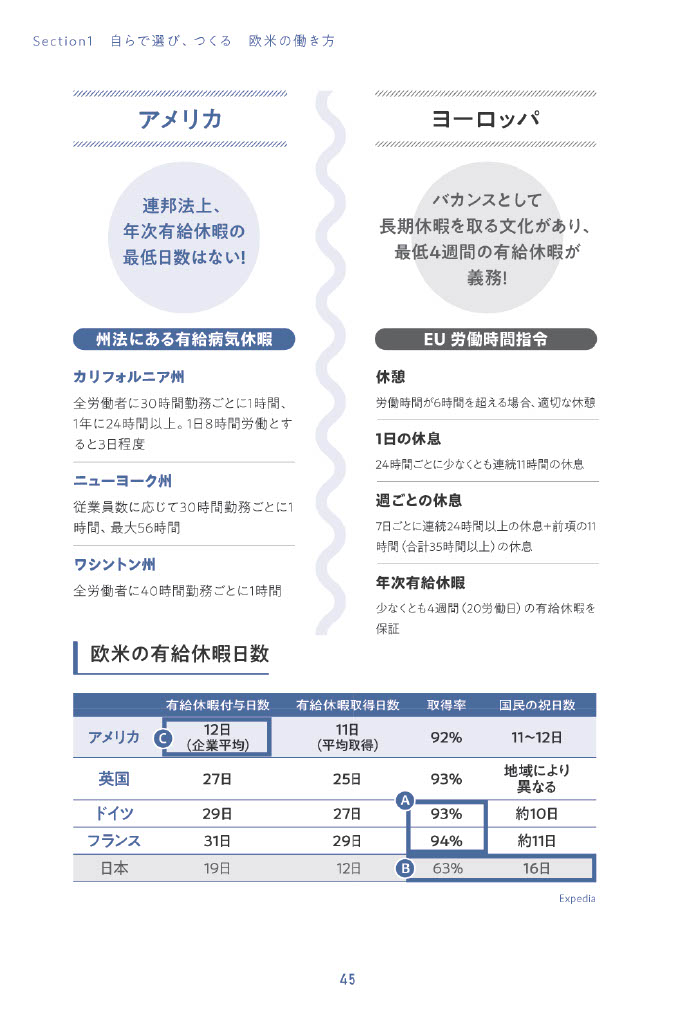 自由の国・アメリカは働き方も自由だ。日本では労働基準法によって、企業が労働者を働かせることのできる上限が決まっているが、アメリカでは、国の法律・連邦法上、それがない。休暇についても統一された決まりはなく、各企業の裁量に委ねられている。